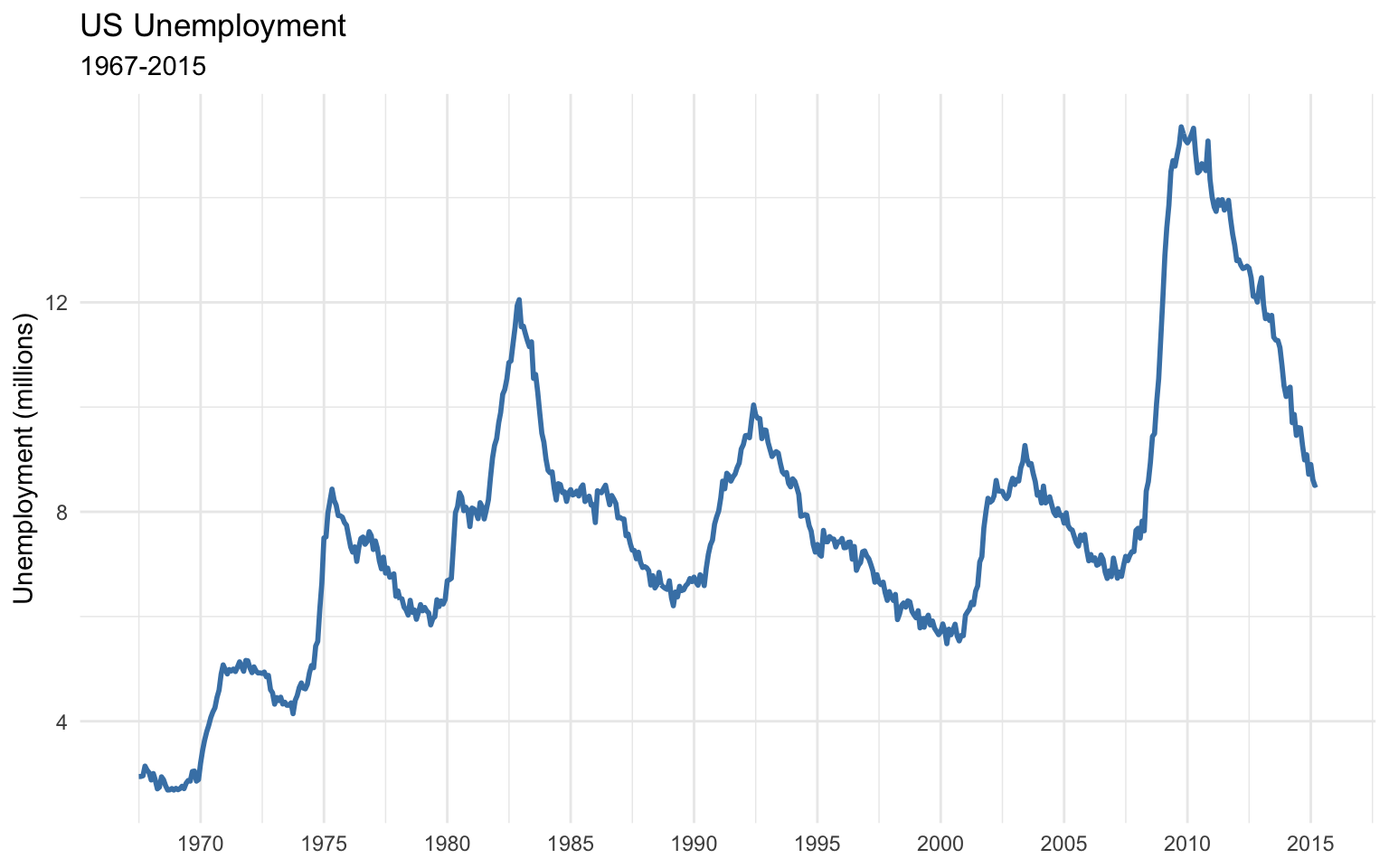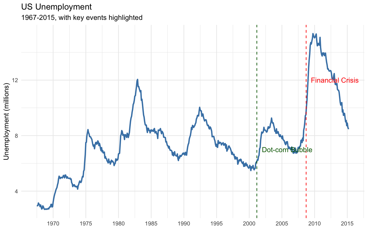 - Highlight periods of recession with shaded rectangles or vertical lines.