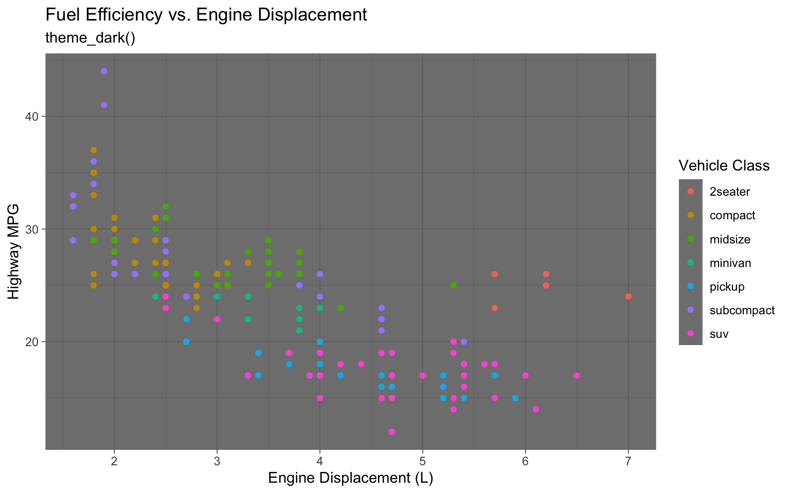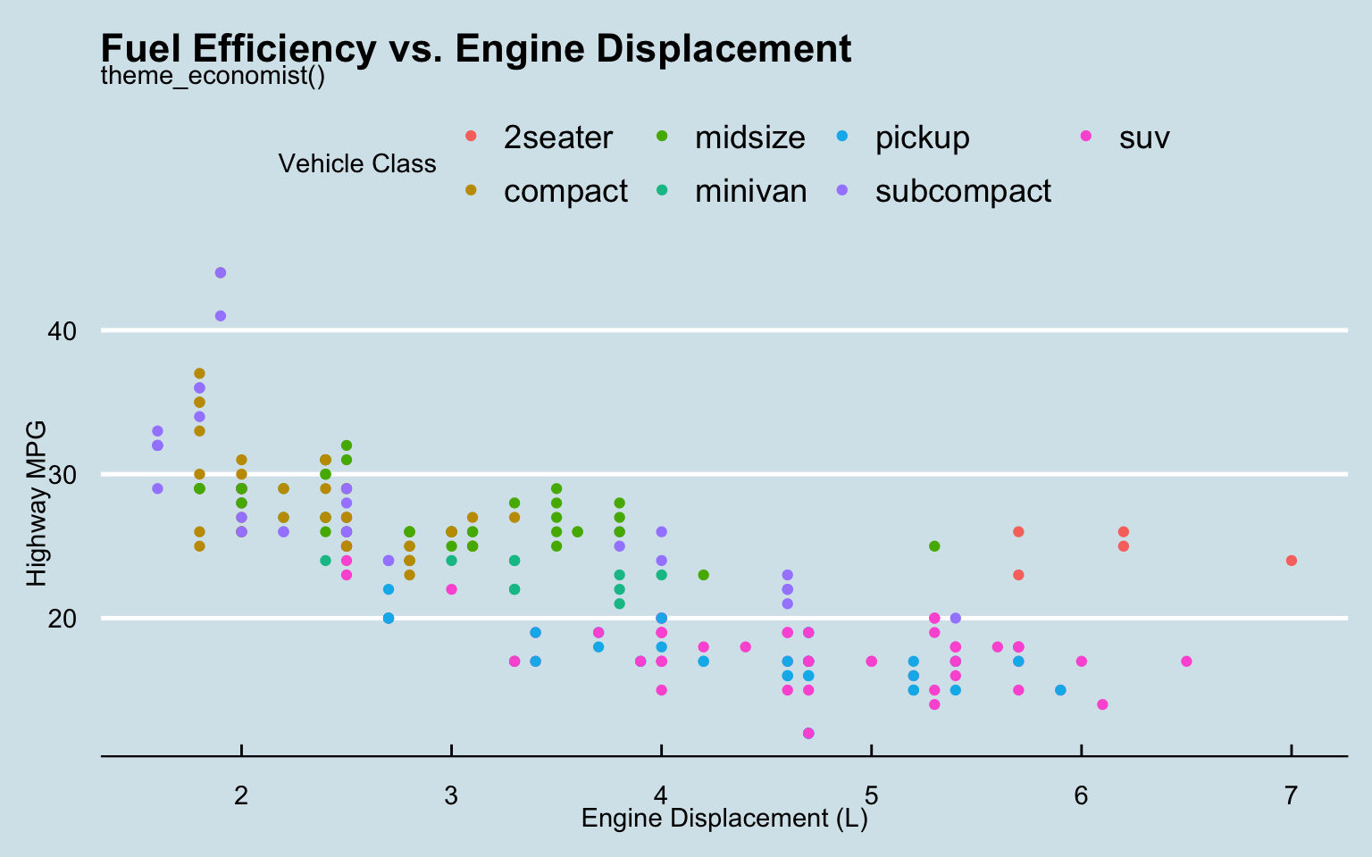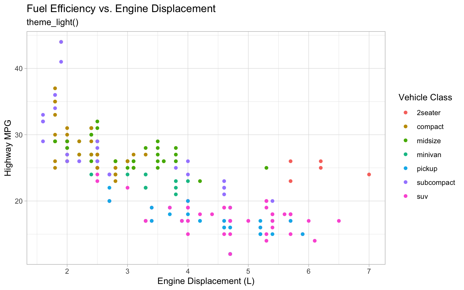 <THEME_FUNCTION>Letβs start with a simple example using the built-in mpg dataset: