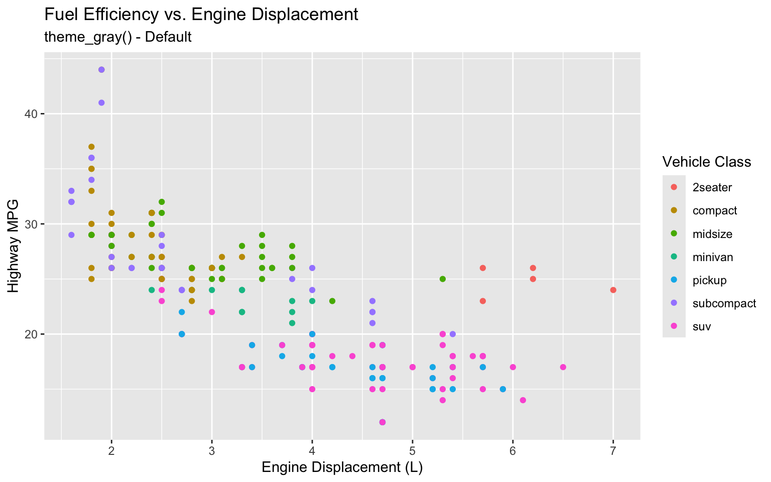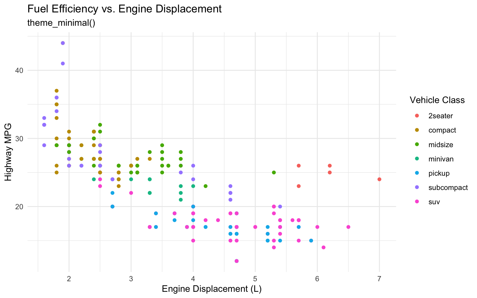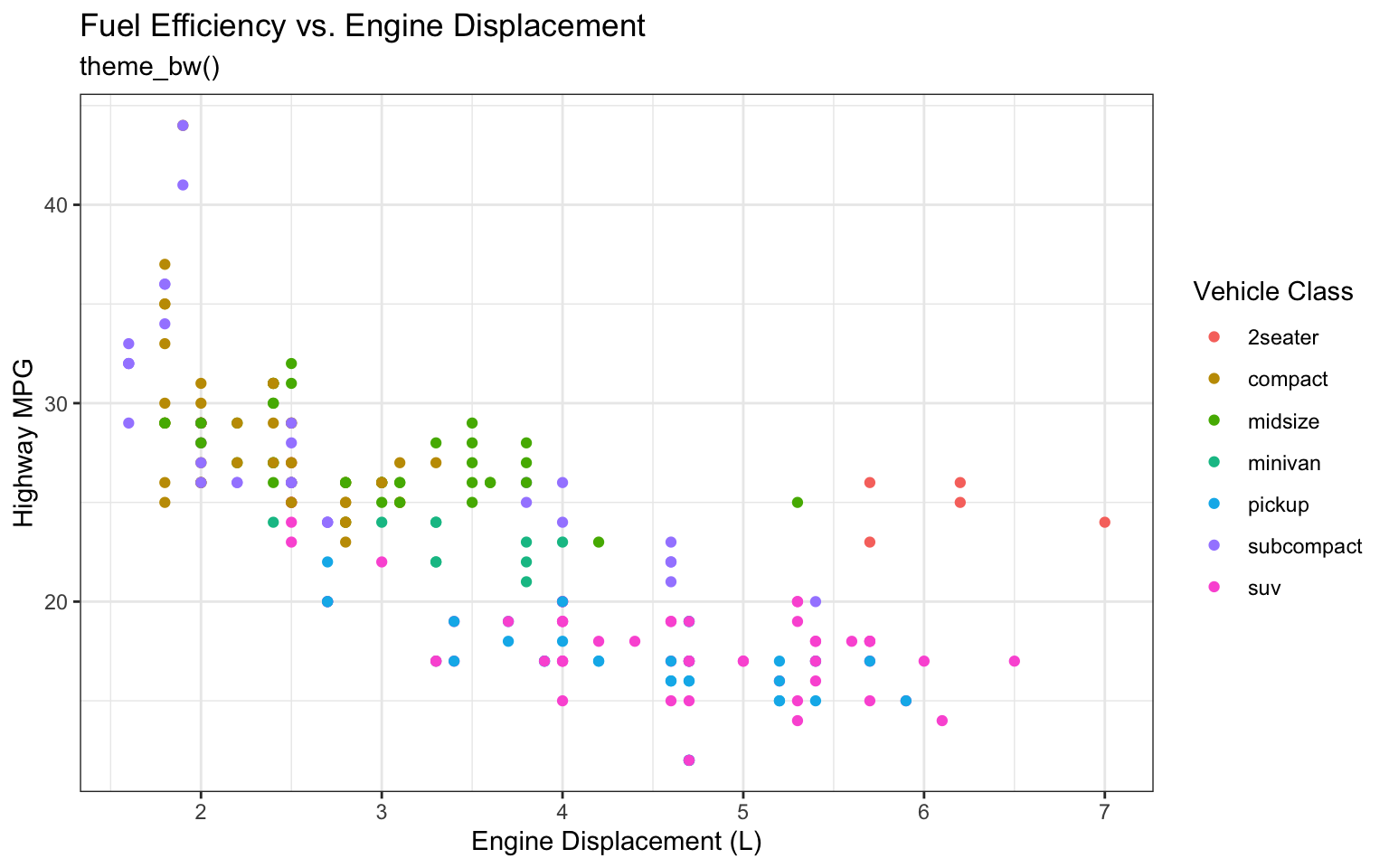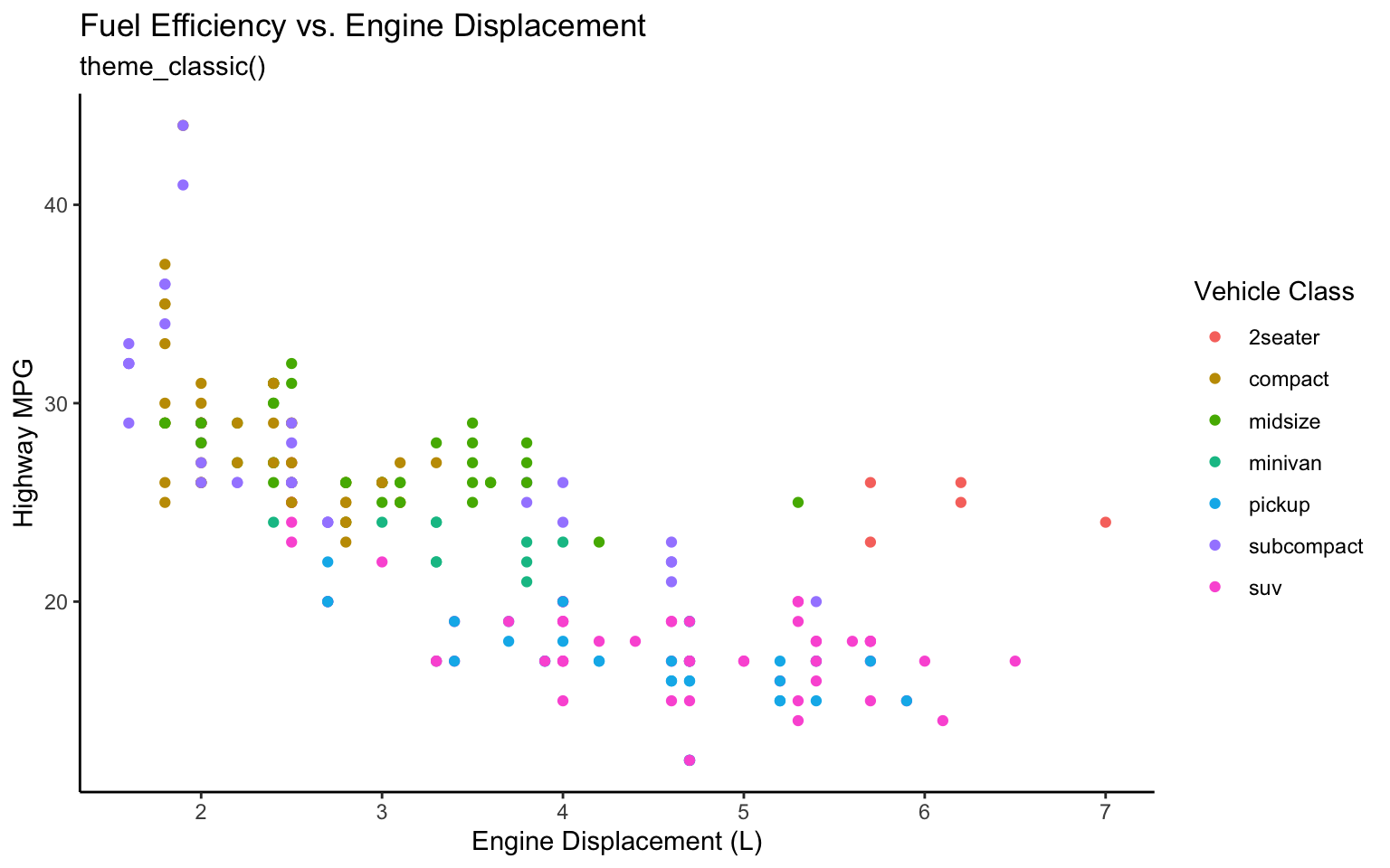 <THEME_FUNCTION>Letβs start with a simple example using the built-in mpg dataset:
